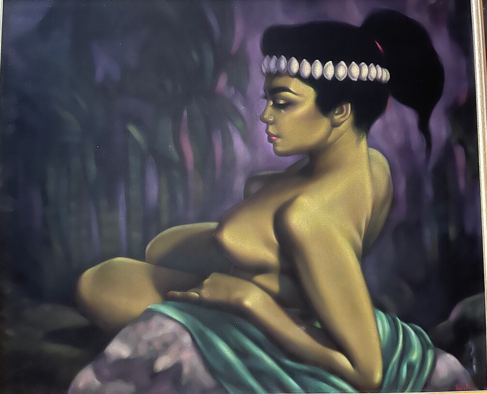 Reclining Nude from Samoa with cowry shell headband painted in 1962 by Ralph Burke Tyree